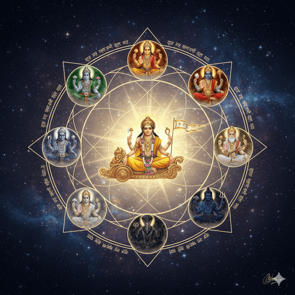 About the Author Raja Ratnam is a passionate researcher and writer specializing in Indian mythology and epic stories.With years of experience studying texts like Ramayana, Mahabharata,Navagrahas, Ketu Deva and other cultural scriptures,he brings insightful interpretations and practical lessons from these timeless stories. Raja Ratnam believes in making mythology accessible and meaningful for modern readers,helping them understand the moral, ethical, and cultural significance behind characters likeRama, Laxman, Shani Deva, and many more. Connect with the author: info@ratnamstrategy.com Introduction — More Than Planets, Eternal Teachers The Navagrahas are often misunderstood as mere planets that influence fate.In truth, they are cosmic teachers — divine forces that guide the soul through karma, experience, growth, and liberation. The purpose of each Graha is not to punish, but to teach.Transits are not accidents, but lessons timed by the universe. Together, the Navagrahas form a complete spiritual syllabus for human life —from birth and identity to desire, duty, wisdom, and finally moksha. Surya — Awakening the Soul (Atman) The source of life and consciousness is Surya Deva.He teaches: Surya awakens the Atman, reminding us to stand in our truth and shine without fear. Without Surya, there is no life.Without self-awareness, there is no growth. Chandra — Mastering the Mind…