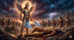 After Shantanu’s death, Chitrangada took charge of the vast Kuru kingdom. His reign was marked by strength, courage, and ambition. He was known as a fierce warrior who could defeat enemies in battle.